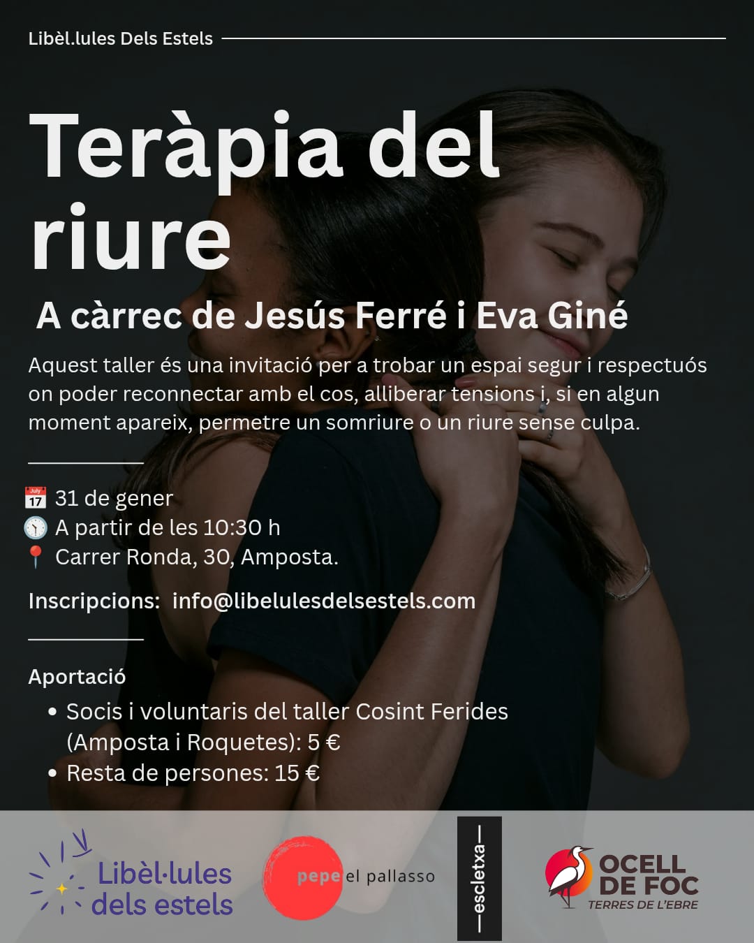 El pallasso ens convida a respirar junts, a deixar que la fragilitat es converteixi en energia, i que la rialla ens recorde que som vius.Activitat organitzada per Libèl·lules dels estels, associació de dol gestacional, perinatal i neonatal a les Terres de l'Ebre i Baix Maestrat.